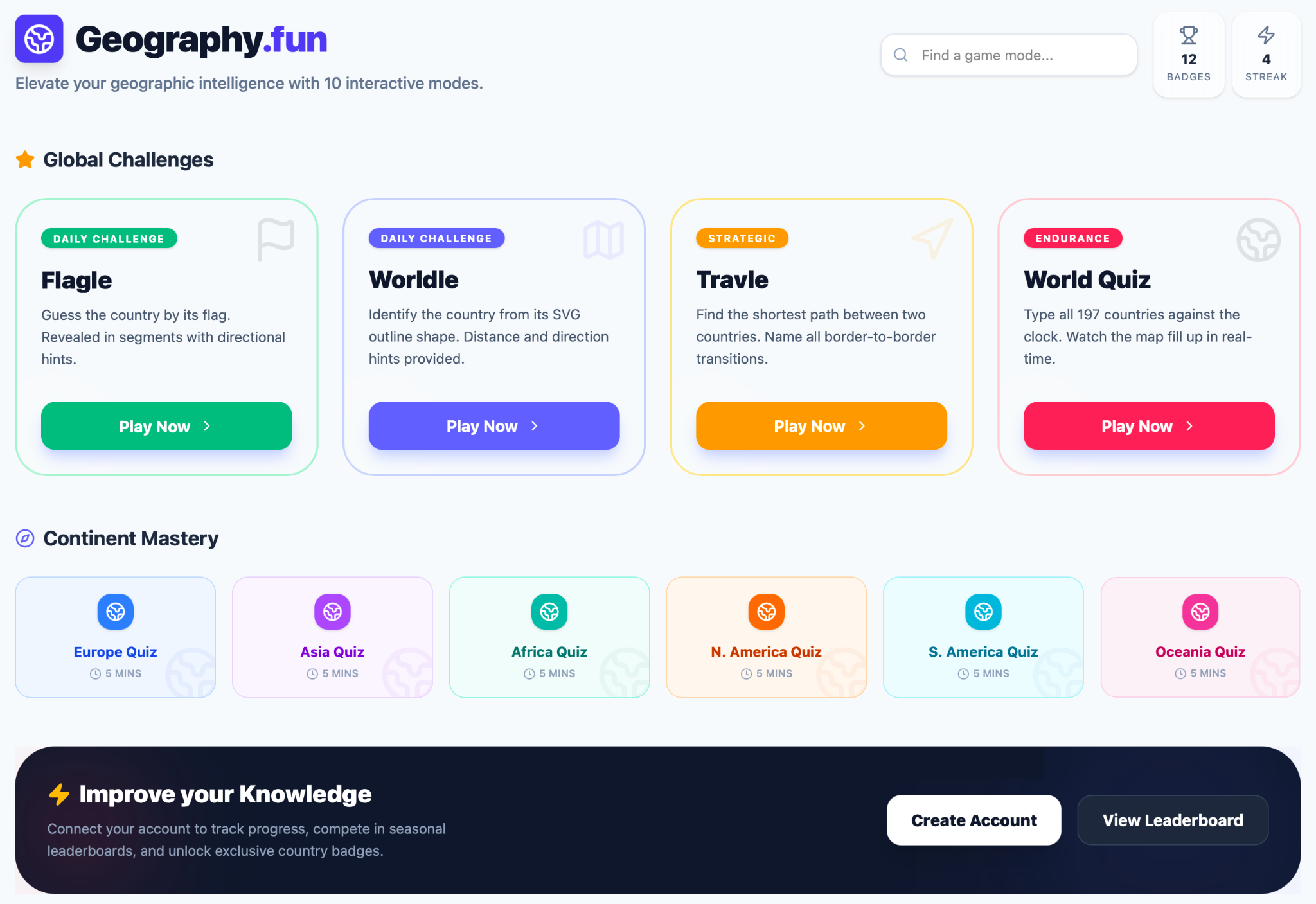 We ran the same product brief through four agentic AI tools — FigmaMake, Lovable.ai, Google AntiGravity, and MagicPath.ai — using a geography quiz platform as the test case. The brief described a product with multiple game modes, continent-specific quizzes, and a need to communicate difficulty and variety to first-time visitors.