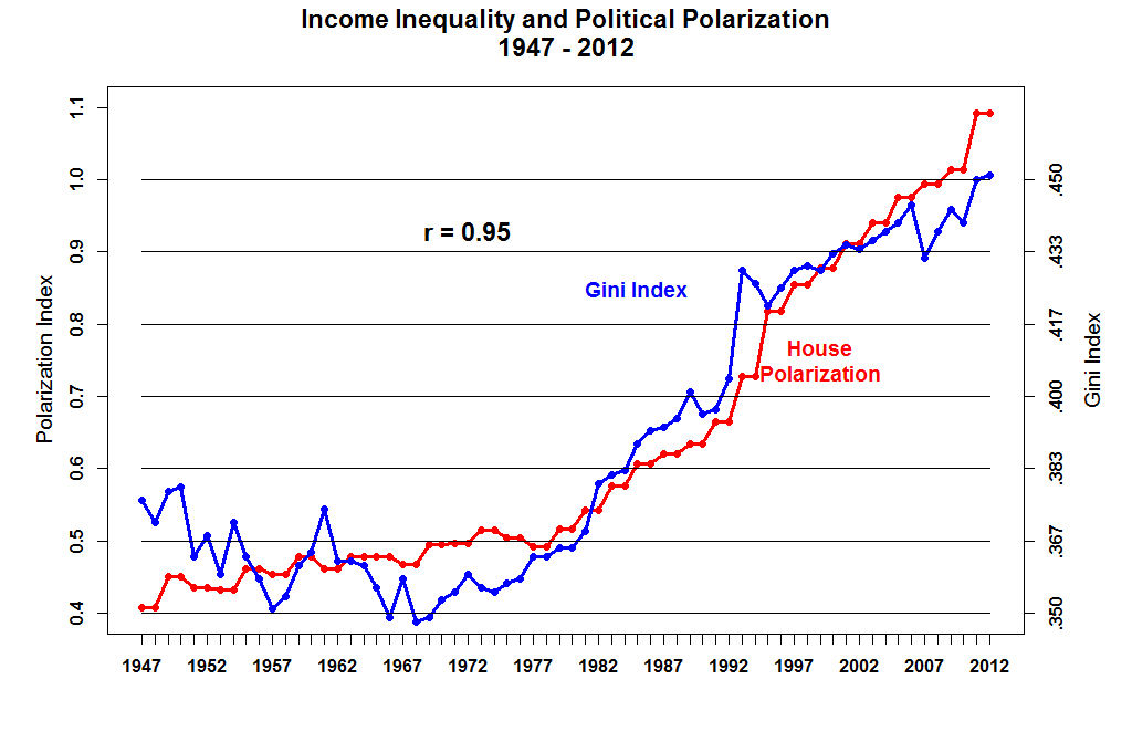 The decline of the middle class and subsequent rise in inequality have had a detrimental impact on American society. As shown in the book "Polarized America: The Dance of Ideology and Unequal Riches," there is a strong correlation between wealth inequality and rising social and political tensions measured by polarization in recent times (Figure 1).15 Recognizing the importance of the middle class, the Biden administration has strongly emphasized middle-class growth in its economic doctrine.
